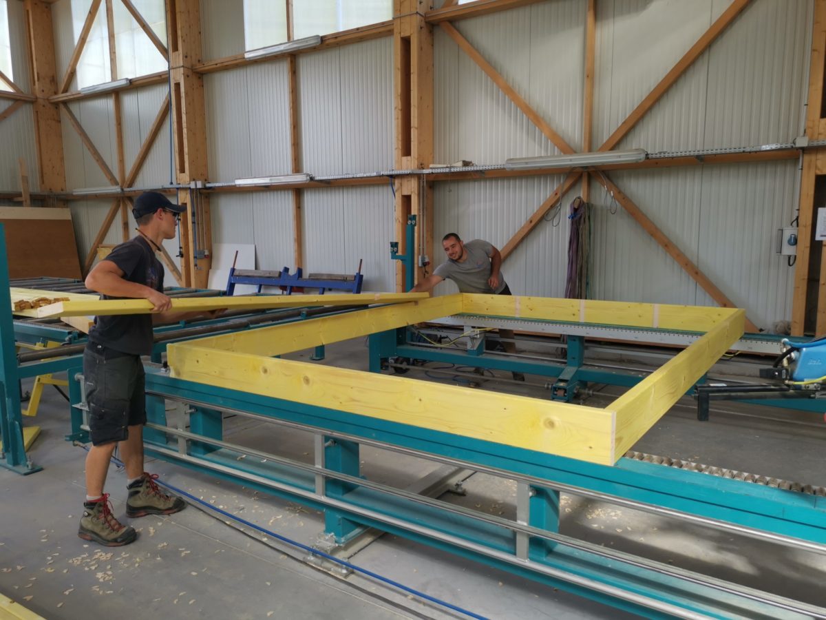 Nous pouvons commencer le travail de préparation du chantier en atelier. En effet, nous taillons et assemblons la structure bois de toute l’ossature de la maison !