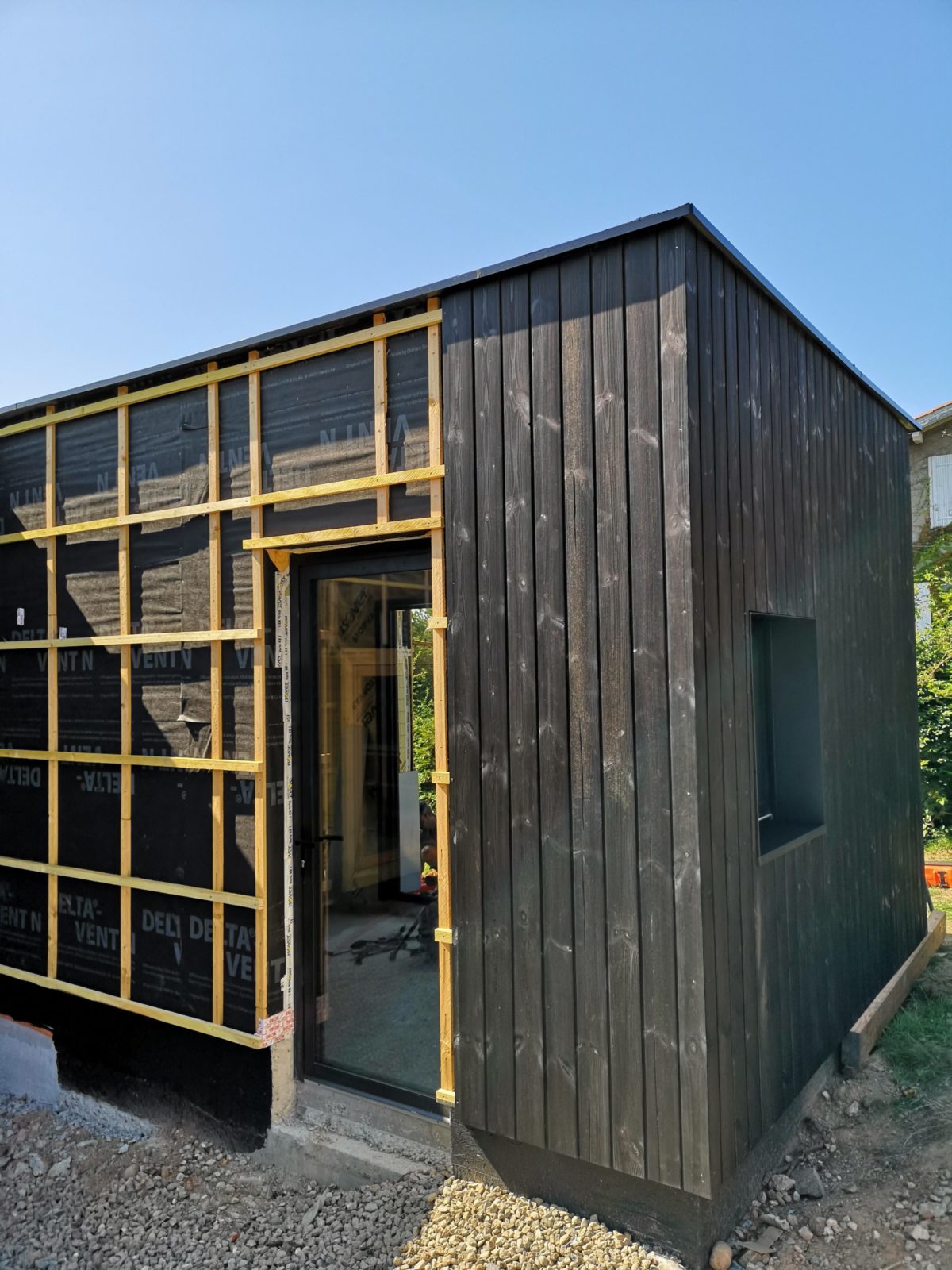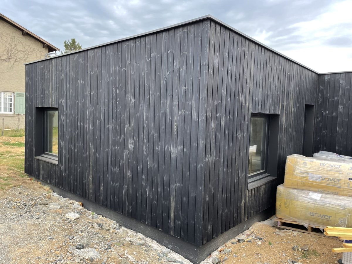 La particularité de ce chantier est indéniablement le Bardage Bois !!