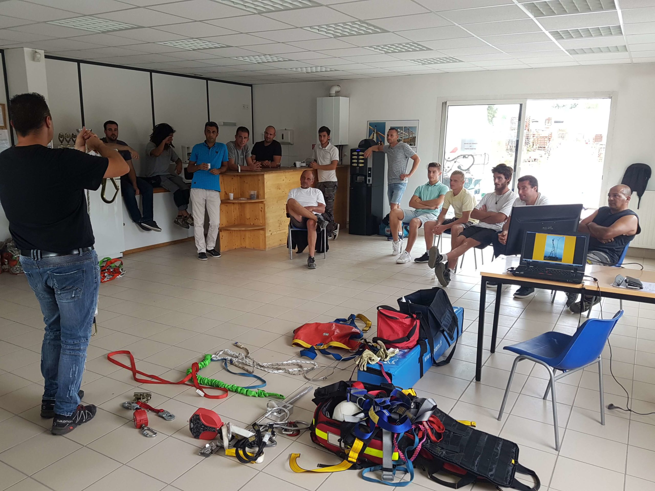 2 formateurs étaient à notre disposition pour répondre aux questions et pour nous donner toutes les nouvelles techniques d’utilisation des Equipements de Protections Individuel : EPI.