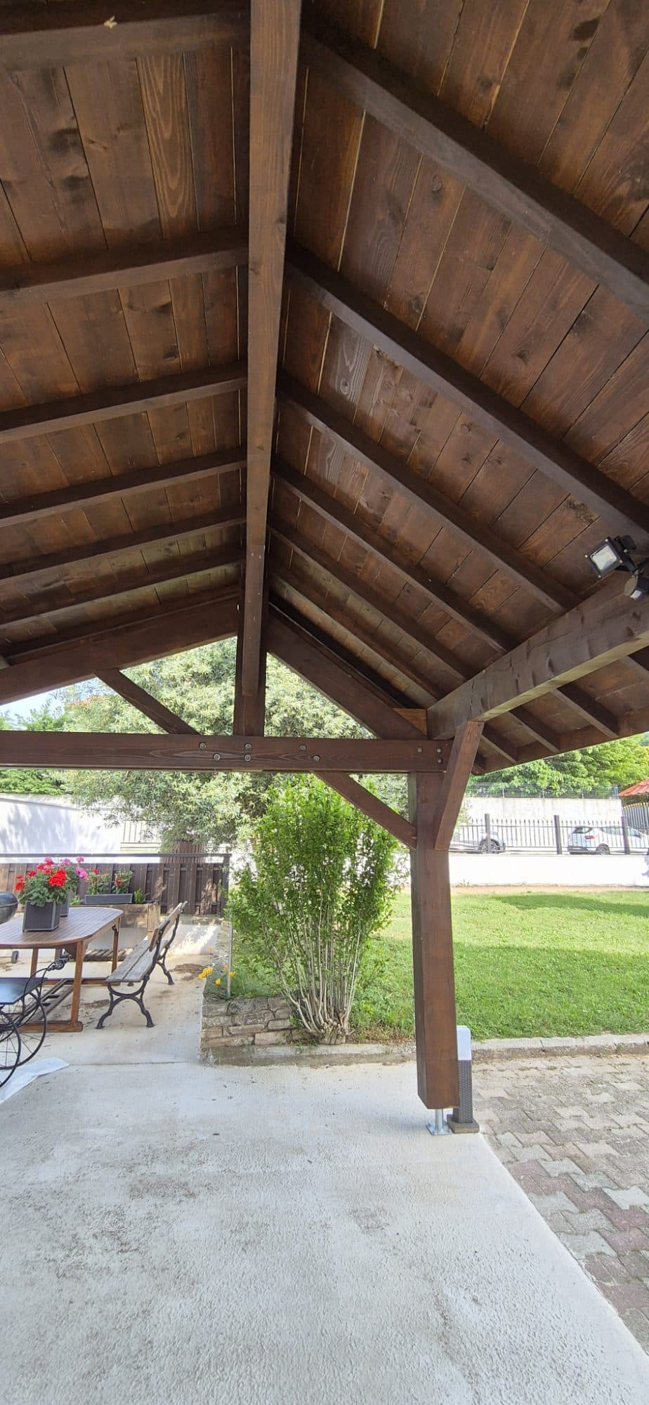 Nous avons récemment achevé la construction d’un auvent sur-mesure comprenant :