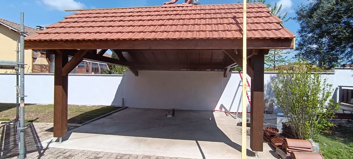 🔨✨ Fourniture et pose d’un auvent, abri de voitures en bois avec couverture en tuiles ! ✨🔨