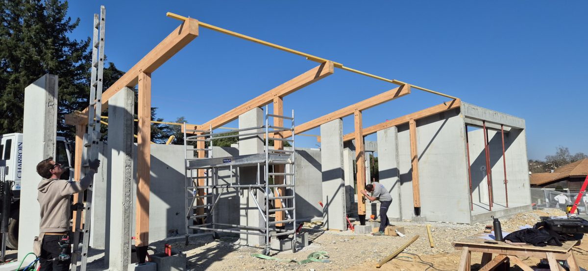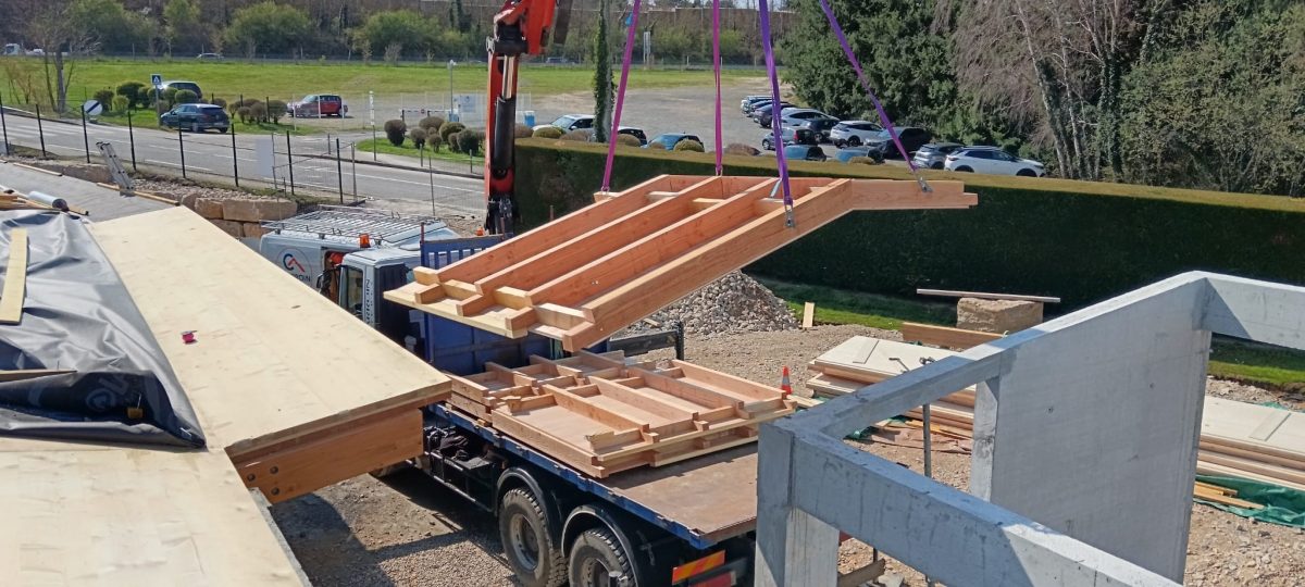 🌲 Le bois, taillé avec précision dans nos ateliers, est assemblé sur place par nos charpentiers. Une belle démonstration du savoir-faire de nos équipes, mobilisées pour donner vie à une structure à la fois durable, esthétique et fonctionnelle.