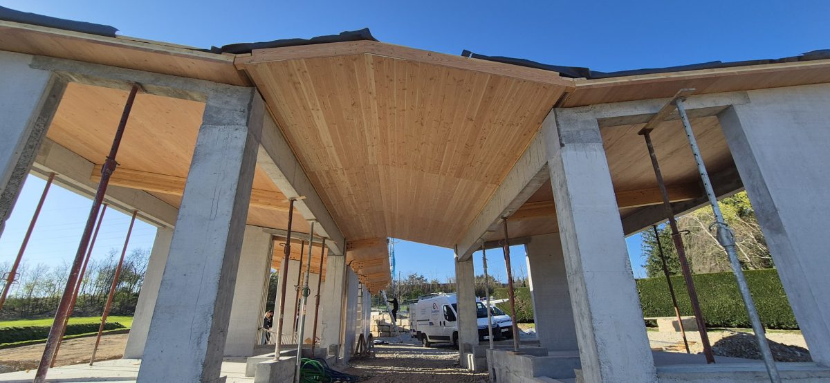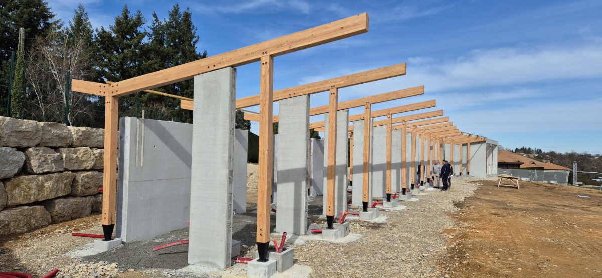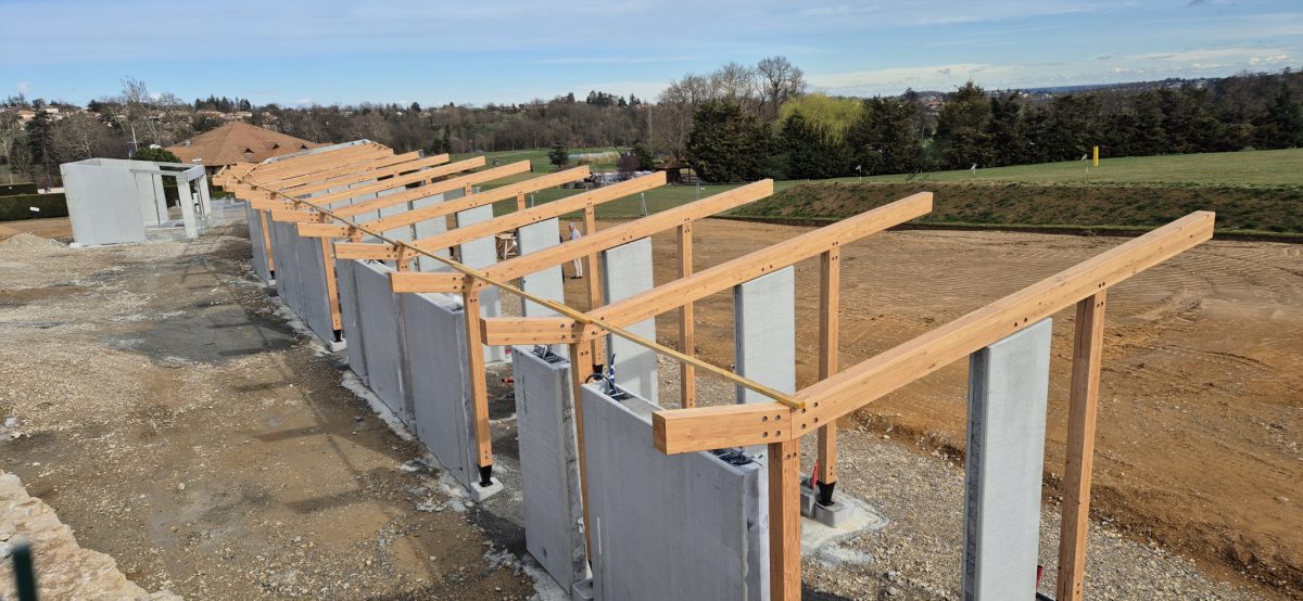 #charpente #constructionbois #golf #practice #chantier #douglas #CLT #LaTourDeSalvagny #charpentiers #boisdouglas #zinguerie #photovoltaïque #bacacier #constructiondurable
