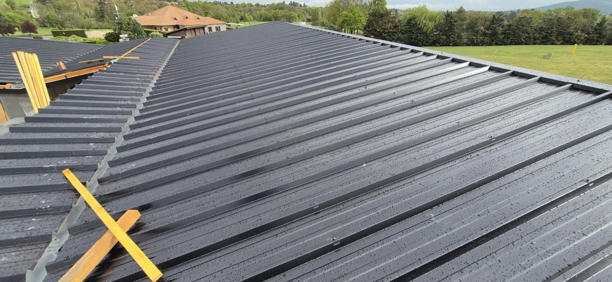 🔩 La toiture, quant à elle, est réalisée par nos zingueurs en bac acier, support des futurs panneaux photovoltaïques. Une étape clé pour allier protection, performance énergétique et durabilité.