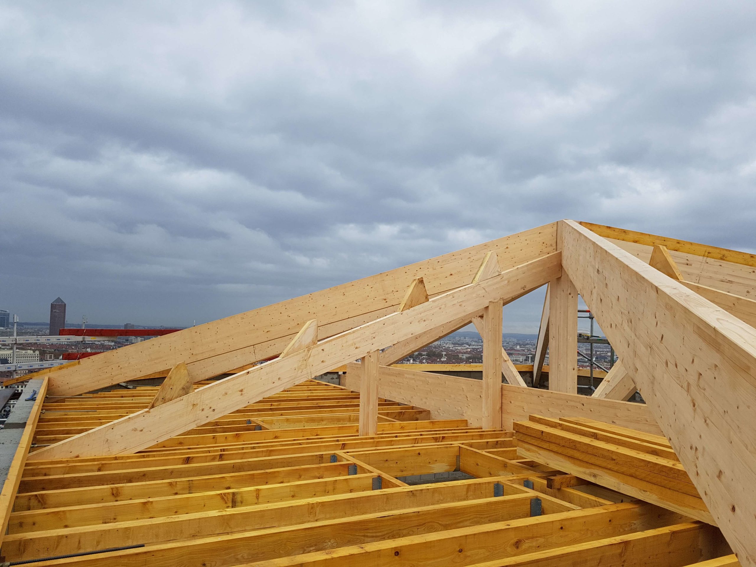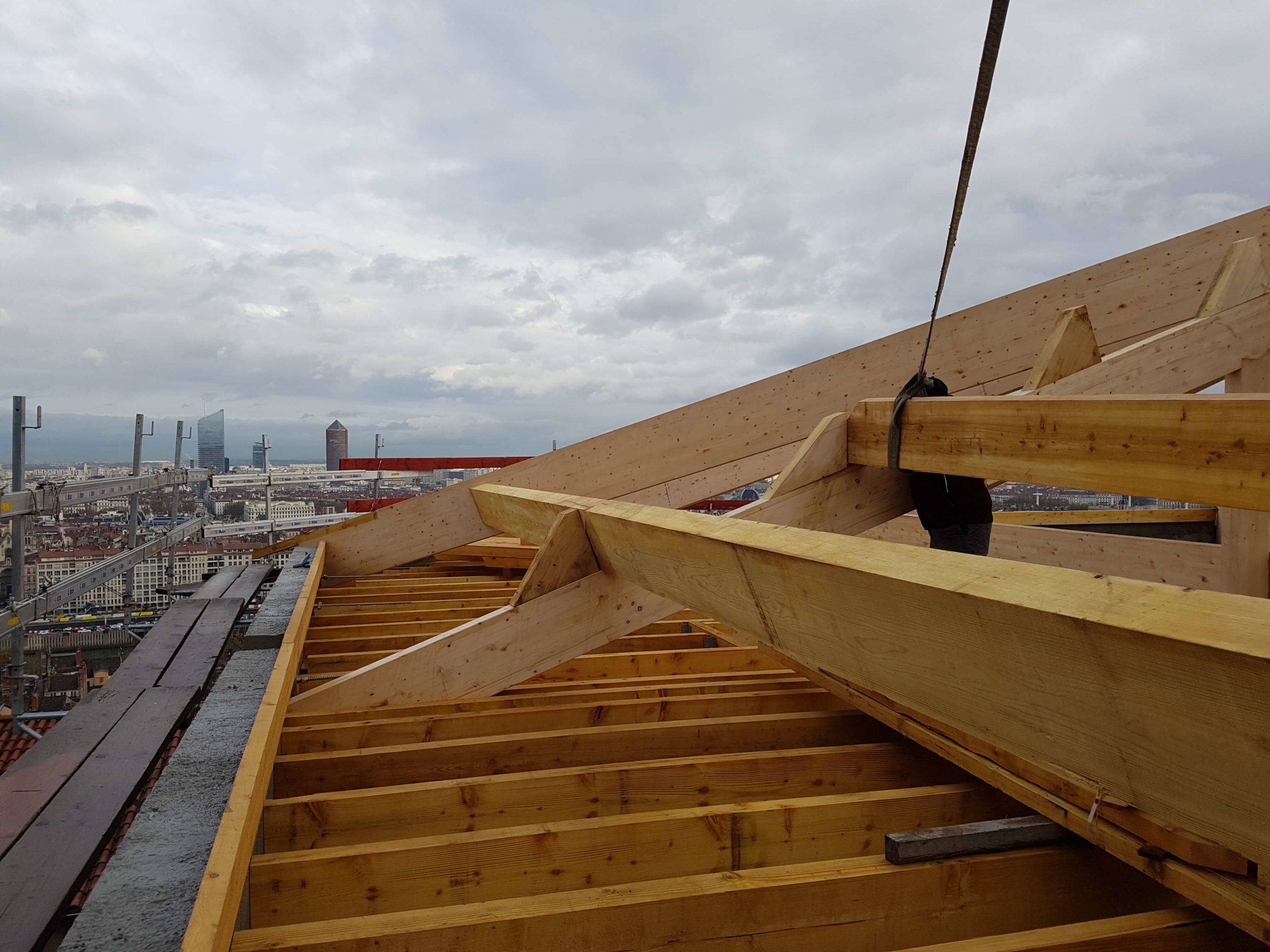 Experts en rénovation de toitures et surévaluations, nous sommes récemment intervenus sur Lyon Centre suite à la demande de l’ECAM (Ecole Catholique des Arts et Métiers). En effet, des travaux de requalification et surélévation d’un bâtiment ont été réalisés. Nous avons également rénové la toiture (charpente et couverture).