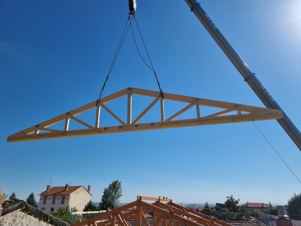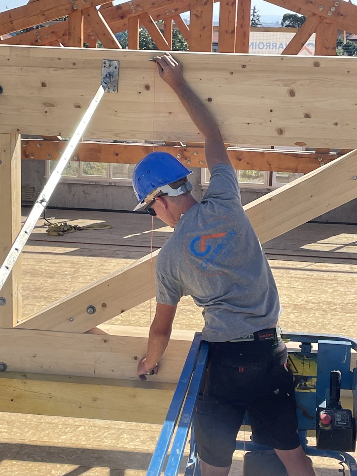 Nous pouvons commencer le travail de préparation du chantier en atelier. En effet, nous taillons et assemblons la structure bois de toute l’ossature de la charpente !