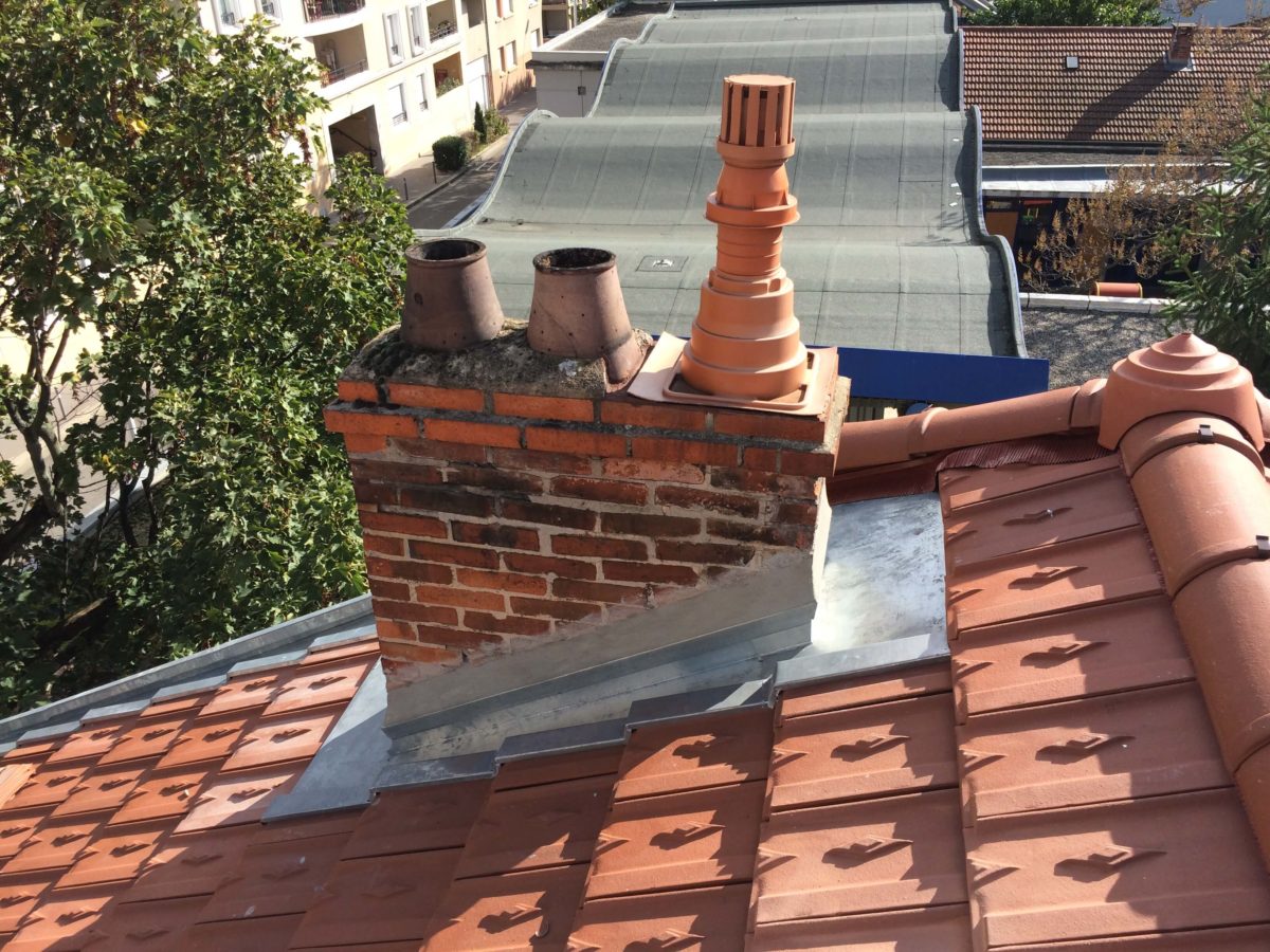 Nous avons installé une nouvelle couverture à l’aide de tuiles losangées avec double littelage et écran de sous-toitures. La zinguerie de toitures (cheneaux, descentes et abergements), en zinc, a également été refaite à neuf.