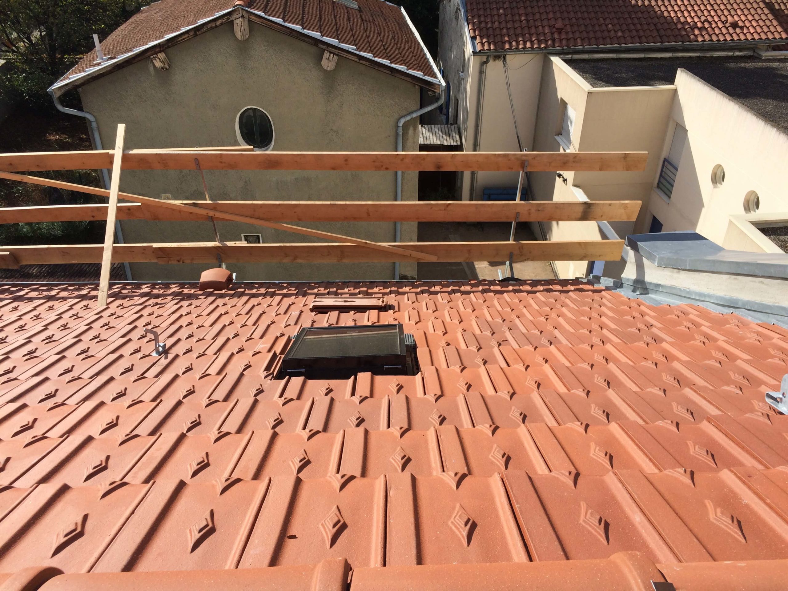 En tant qu’experts de la rénovation de toiture, nous sommes intervenus récemment pour des travaux de couverture à Lyon 3ème. Comme pour tous nos chantiers, nous avons installé un échafaudage et des protections périphériques.
